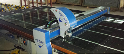 A sensor is placed on the cutting head, to stop the machine in case of lack of glass