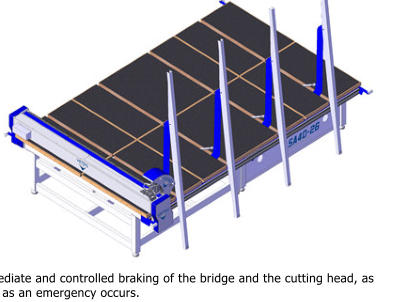 Immediate and controlled braking of the bridge and the cutting head, as soon as an emergency occurs.